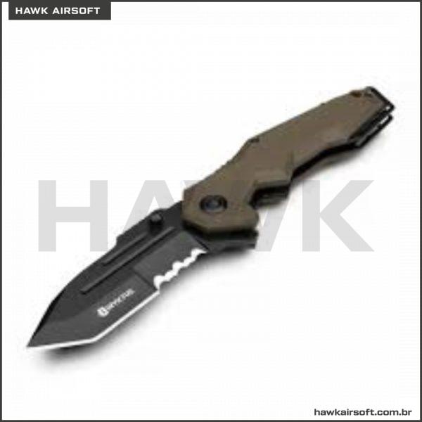- Acabamento: lâmina preta e cabo na cor deserto.