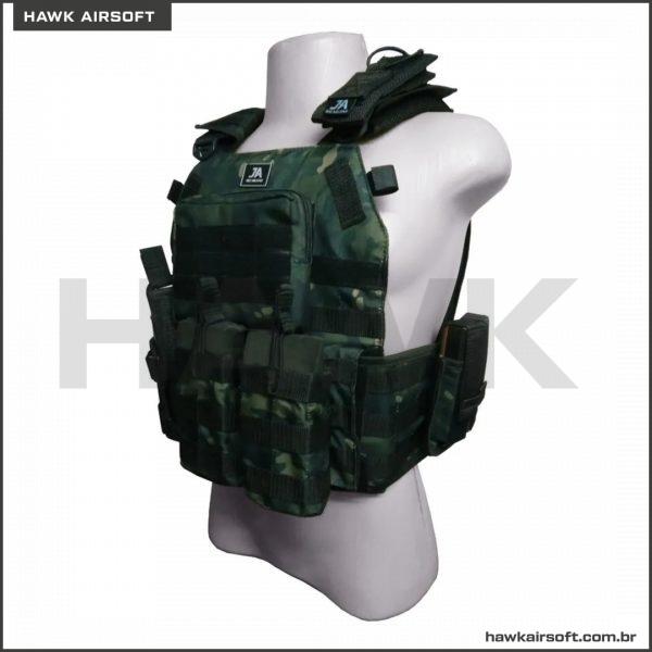 COLETE MODULAR PLATE CARRIER COMPLETO MULTICAM BLACK + 8 ACESSÓRIOS INCLUSOS