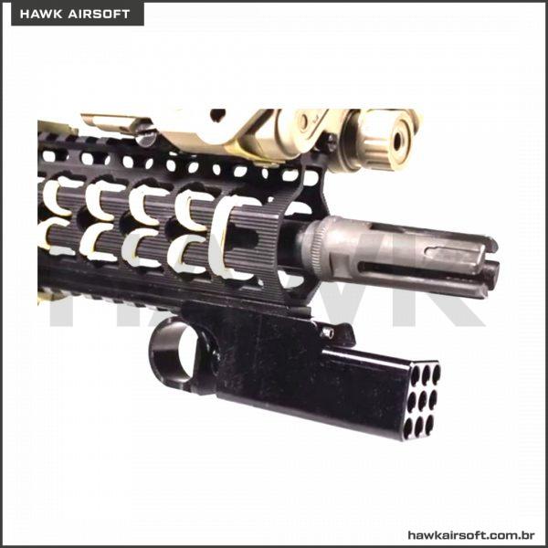 Um lançador de granadas para montar uma arma ou, por que não, um rifle, sem levar mais espaço do que o necessário. O novo minilauncher desenvolvido pela Zoxna com o qual você pode baixar até 40 BB em um único tiro Construído em alumínio e alimentado por gás verde, este lançador de granadas leva pouco mais do que uma lanterna de pistola e podemos anexá-lo a qualquer sistema tecelão ou picatinny confortavelmente