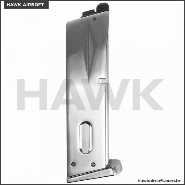 MAGAZINE / CARREGADOR WE PARA PISTOLAS GBB PADRÃO M92 25 ROUNDS SILVER GREEN GÁS