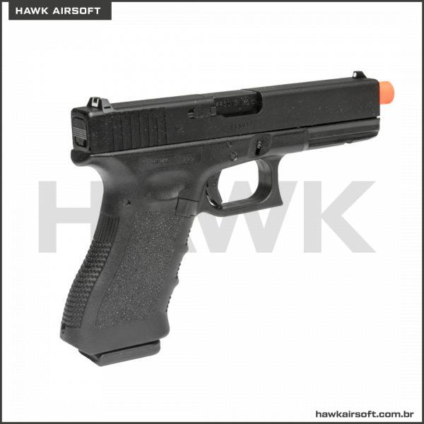 Este é o avô das pistolas GLOCK, o modelo que veio no começo. O original disparou balas de 9 mm e esta réplica licenciada dispara balas de 6 mm que saem do cano com uma energia máxima de 1 joule. Se você quiser ver o que tornou essa arma tão clássica, você pode tirá-la exatamente como a original. A lâmina de metal pesado é visualmente impressionante e eleva o peso até 650 g. Graças ao blowback e um tiro ajustável, você sente que está disparando a “coisa real”. O GLOCK 17 é um item de colecionador e essencial para todos os fãs do GLOCK.