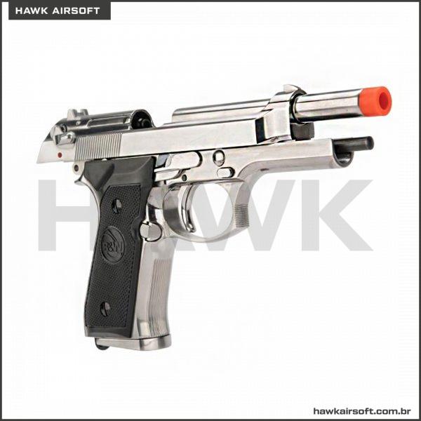PISTOLA DE AIRSOFT A GÁS GBB GREEN GÁS B&W POSEIDON M92 SILVER