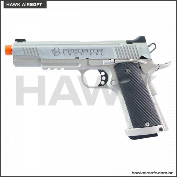 PISTOLA DE AIRSOFT A GAS GBB KING ARMS PREDATOR TACTICAL 1911 SILVER