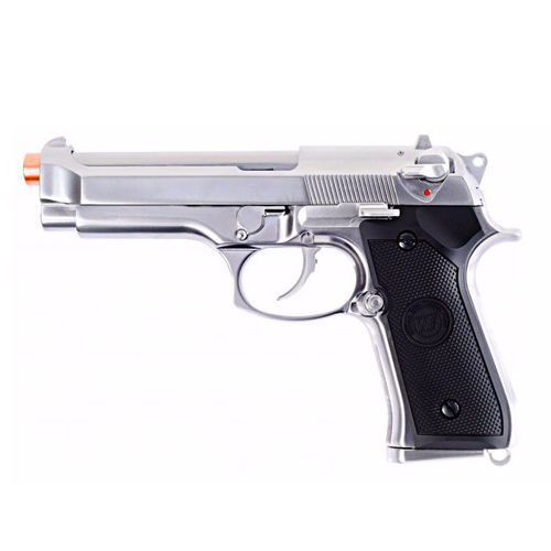 A original e mais popular pistola de estilo Beretta M92, que é totalmente “FULL METAL”, exceto para os apertos feitos em plástico ABS de alta qualidade. Características incluem: