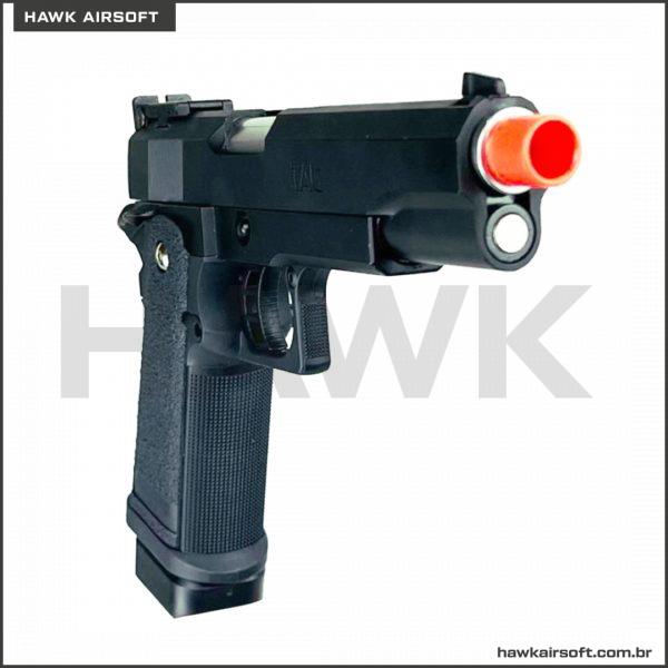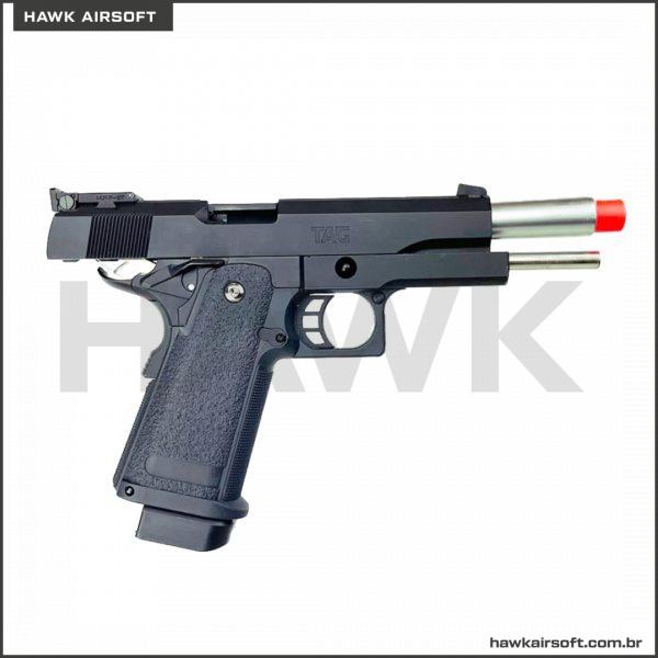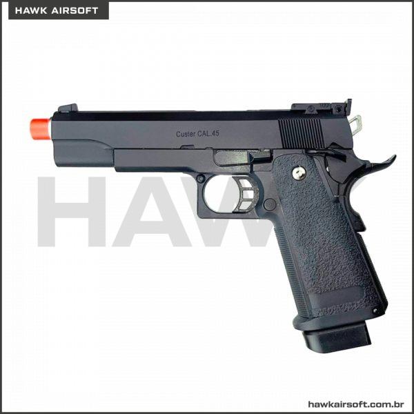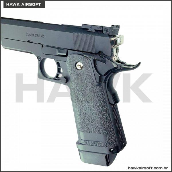 A TAG Custer é fabricada com slide de metal com acabamento anodizado e corpo em polímero reforçado, o que traz qualidade e segurança durante as suas operações no Airsoft.