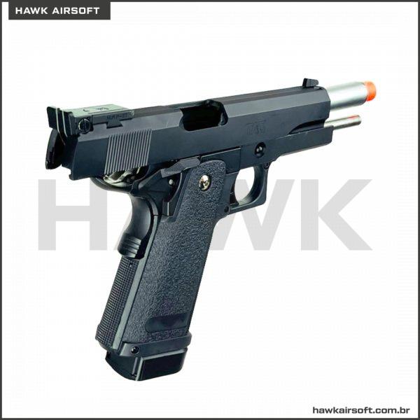 Uma das réplicas realistas do lendário modelo 1911 que trazia o privilégio dos disparos rápidos com reprodução de ataques de guerra.