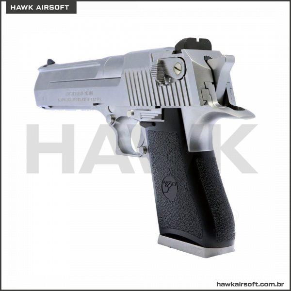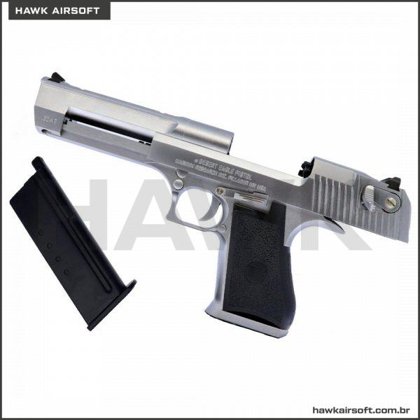 O Desert Eagle 50 Airsoft, contudo é uma das pistolas de airsoft mais chocantes atualmente no mercado. Assim o aço real Desert Eagle foi projetado pela Magnum Research em Mineapolis, EUA e depois fabricado pela Israel Military Industries desde 1984. Portanto sendo apresentado em vários filmes, o Desert Eagle é um canhão de mão bem conhecido que dispara balas de alta potência .50AE.
