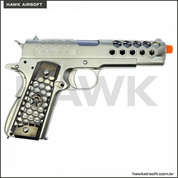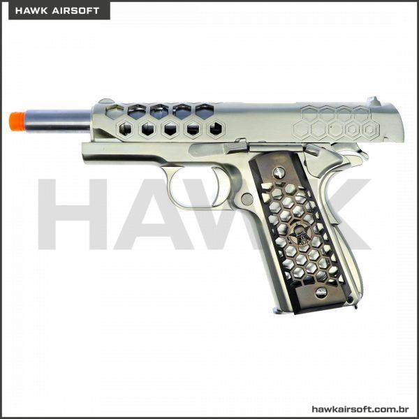 PISTOLA DE AIRSOFT GBB GREEN GÁS WE 1911 HEX CUT GEN2 CHROME
