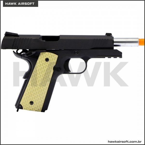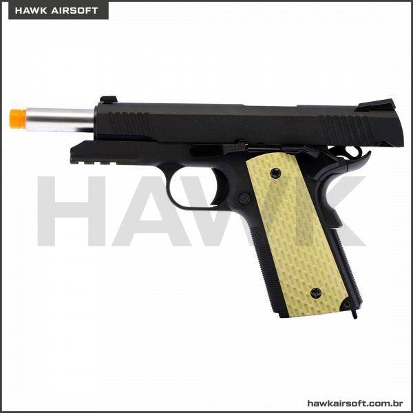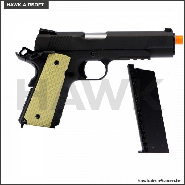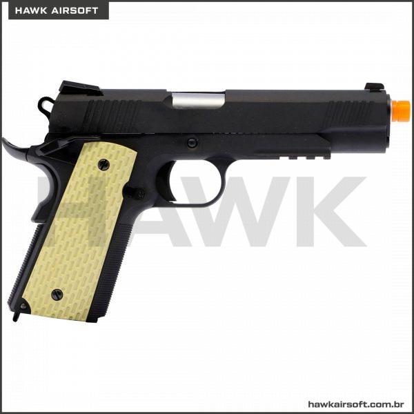 PISTOLA DE AIRSOFT GBB GREEN GÁS WE 1911 KIMBER BLACK / PRETA GRIP TAN