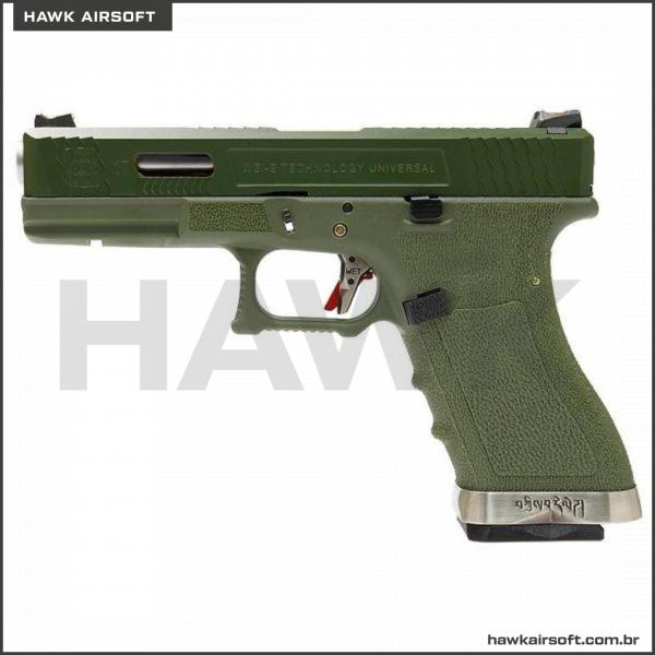 PISTOLA DE AIRSOFT GBB GREEN GÁS WE GLOCK 17 G-FORCE T12 OLIVE DRAB + CASE RÍGIDA