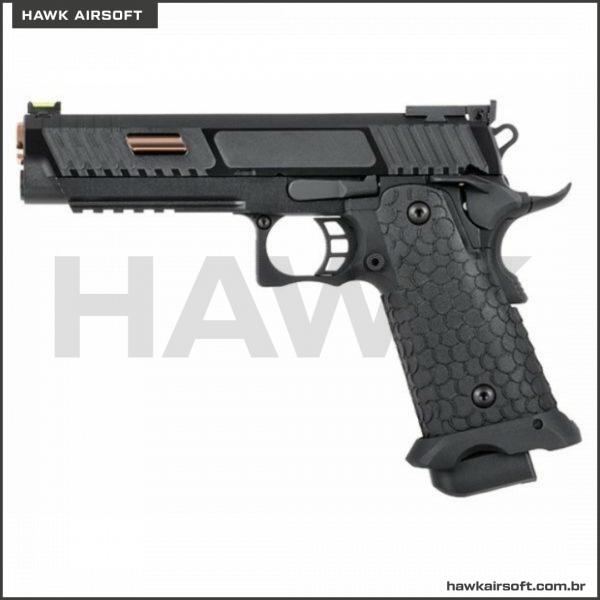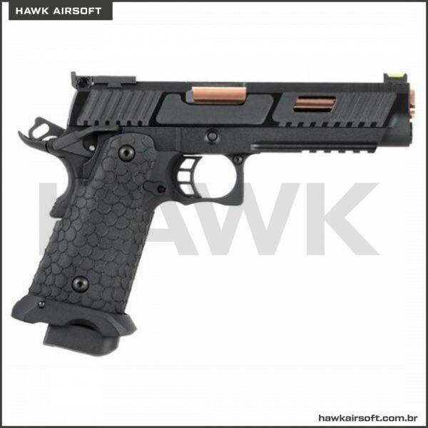 A SRC é um fabricante de airsoft com sede em Taiwan. Eles são famosos por uma variedade de projetos OEM no mundo do airsoft. A Baba Yaga 1911 Hi-Capa Series é a próxima fera tática a chegar ao mercado! Com a durável estrutura metálica completa e slide, esta pistola pode levar uma surra! A textura pontilhada lhe dará uma aderência perfeita sem usar luvas. Os cortes deslizantes permitem que você monte a arma e pressione a verificação muito mais facilmente. Isso emparelhado com os cortes da janela clareia o slide e aumenta a taxa de ciclo. A mira frontal de fibra ótica facilita a aquisição de alvos e o magwell alargado ajuda a recarregar mais rapidamente. O trilho picatinny de cinco slots é cortado na armação e é capaz de montar uma infinidade de lanternas e lasers na armação robusta. Esta pistola foi deixada amiga do interruptor de segurança ambidestro. Sem mencionar que esta pistola é compatível principalmente com TOKYO MARUI, o que significa que você pode atualizá-la com a grande variedade de peças disponíveis no mercado! Este modelo Green Gas está gravando aproximadamente entre 300-330 FPS e é perfeito para jogabilidade CQB. Este é o Hi-Capa dos seus sonhos e o bicho-papão dos pesadelos dos seus inimigos!