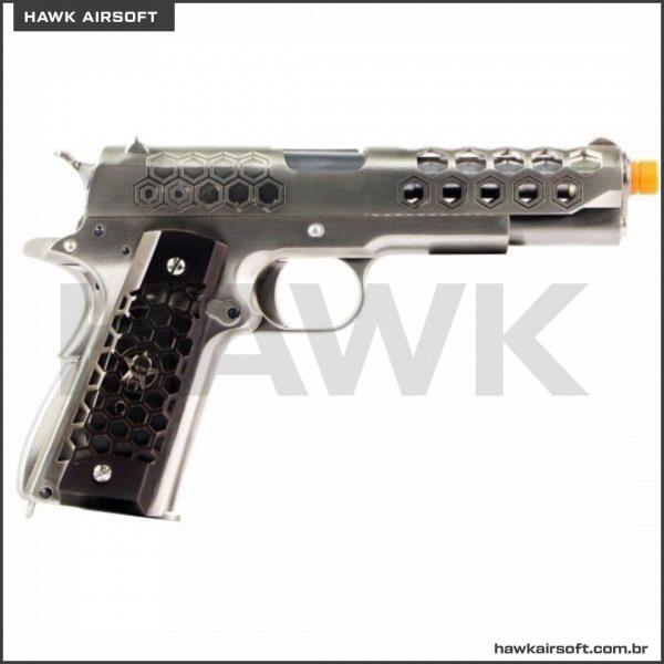 PISTOLA DE AIRSOFT WE GBB 1911 SER HEX CUT GEN2 CHROME
