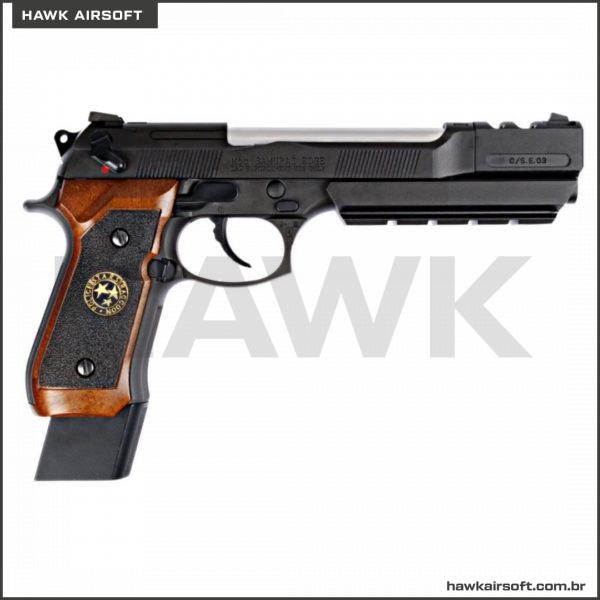 PISTOLA DE AIRSOFT WE GBB M92-SER BIOHAZARD EXTENDED BROWN SAMURAI EDGE