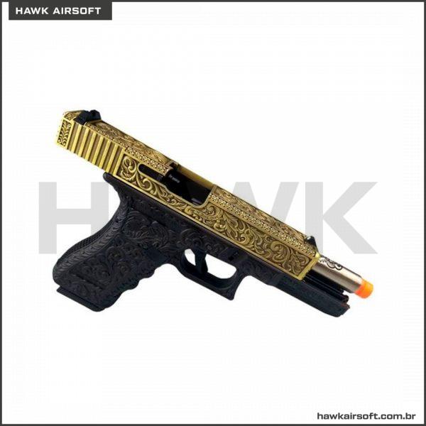 De simples manuseio, a pistola com Slide em Metal, magazine em metal de armazenamento de até 25 Bbs e sistema BLOWBACK, o que permite ao atirador uma sensação de realismo semelhante a arma de fogo, além de proporcionar uma empunhadura de tiro extremante confortável e agradável no ato dos disparos.