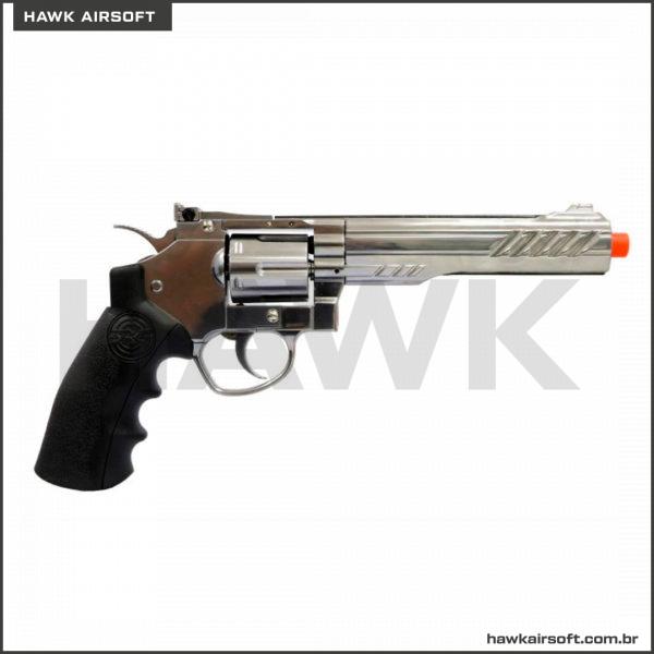 Este Revolver Airsoft Full Metal série TITAN tem um barril de 6 polegadas e é totalmente metálica, assim com um punho moldado para fácil carregamento de cartuchos.Certamente que este revólver de airsoft é um dos melhores que já vimos. Para operar este revólver você precisará de Cartuchos de CO2 e BBs de 6mm polidos de alta qualidade.
