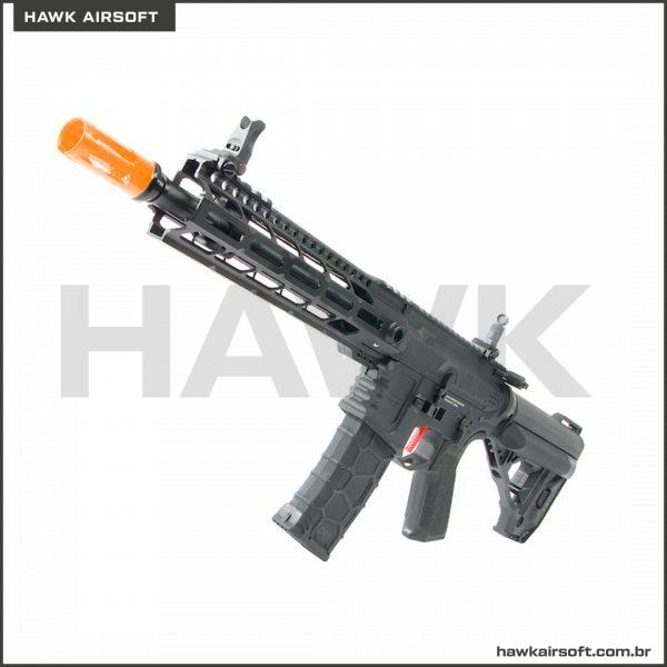 O VFC Samurai Edge é o mais recente AEG vindo do VFC. Externamente, a arma é projetada lindamente com receptores estilo tarugo e até mesmo motivos de Samurai esportivos prateados no receptor inferior. Em conjunto com os atraentes conjuntos de receptores, a arma vem com um cano externo estriado e um trilho compatível com M-Lok de design slimline com slots de trilho picatinny suficientes na posição 12 horas na frente para a montagem de luzes ou lasers. O Samurai Edge apresenta o estoque QRS projetado por VFC e usa a mesma série de Magazines, dando-lhe um visual moderno e elegante. Como toque final, a arma exibe um gatilho “relâmpago” vermelho. AInternamente, o Samurai Edge apresenta a versão mais recente do ECS 2.1 e unidade de acionamento que é a mesma do sistema VIRGO. O ECS é uma unidade programável que adiciona um modo burst ao seguro, semi e automático padrão. A arma também é totalmente ambidestra.