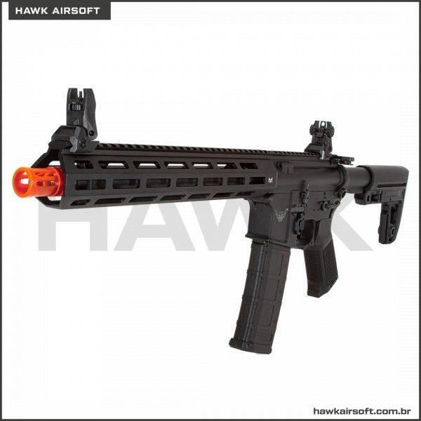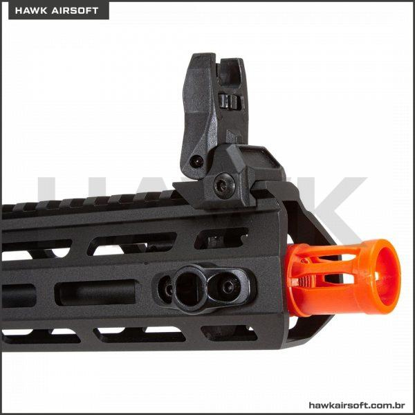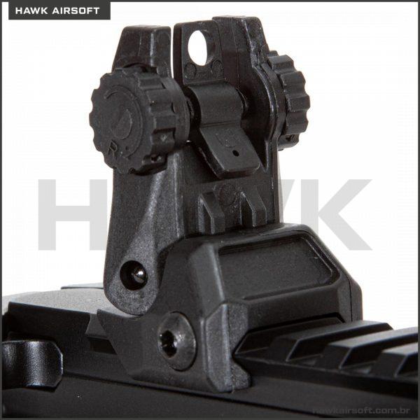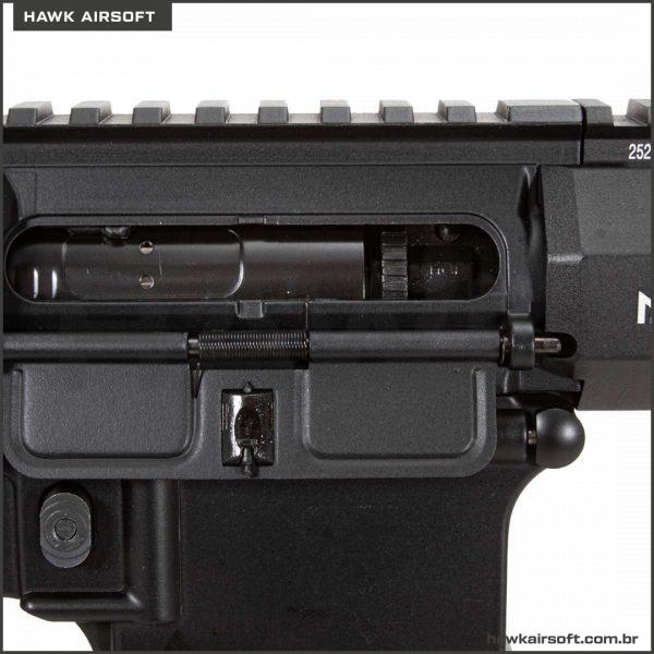 Outro ponto muito bacana desse equipamento é o seu design moderno e diferenciado, que foge um pouco do padrão de rifles M4A1 ou AR-15, mesmo que feito na mesma plataforma.