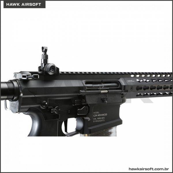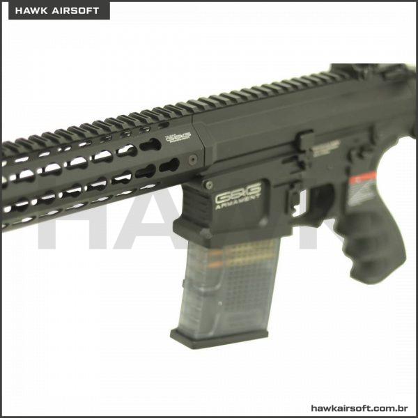 G&G TR16 308SR é um dos melhores lançamentos da G&G no padrão para DMR. Full metal de alumínio usinado e handguard Keymod de 16 polegadas. O modelo 308SR já traz a nova Gearbox da G&G, o modelo G2 com novo desenho, altamente reforçado e compatível com as Gearbox v2 existentes. Esse modelo também possui GATILHO ELETRÔNICO com o novo MOSFET da G&G que permite disparos em Burst Fire de 3 e 5 disparos, além do semi e full auto normal. O novo MOSFET também apresenta algumas características interessantes como o aviso sonoro de pouca bateria, o que prolonga a vida útil da bateria do usuário. O magazine translúcido com fake bullets no padrão 308 / 7.62 é só mais um dos belíssimos detalhes dessa AEG. E não podemos deixar de citar o Air Nozzle com dupla vedação e troca de mola rápida da Gearbox, o que eleva ainda mais o nível dessa máquina.