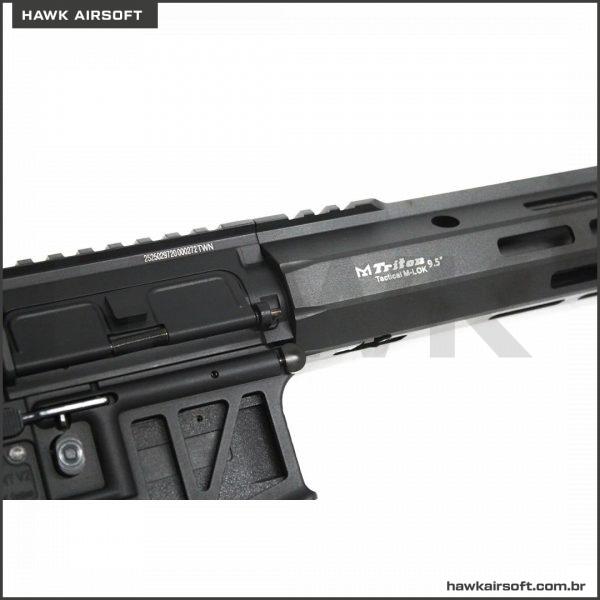 O corpo é feito inteiramente de metal, com marcações de poseidon em baixo relevo. O handguard M-LOK é em metal com comprimento de 9,5 polegadas.