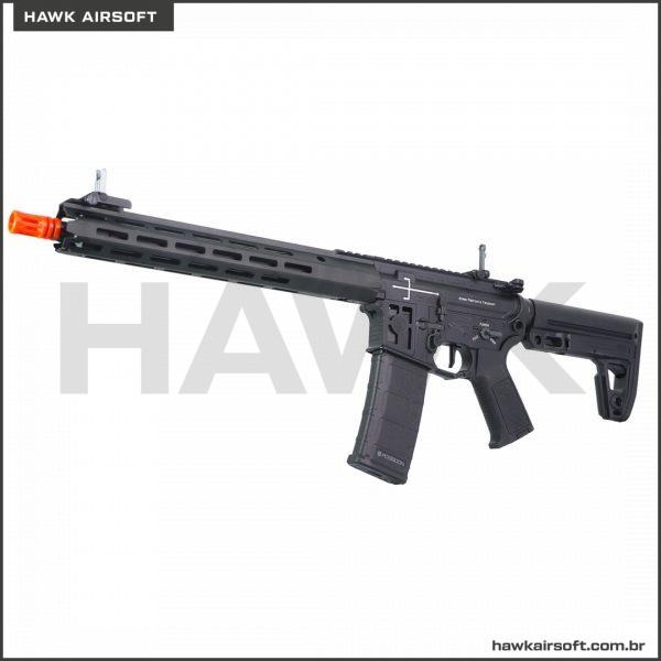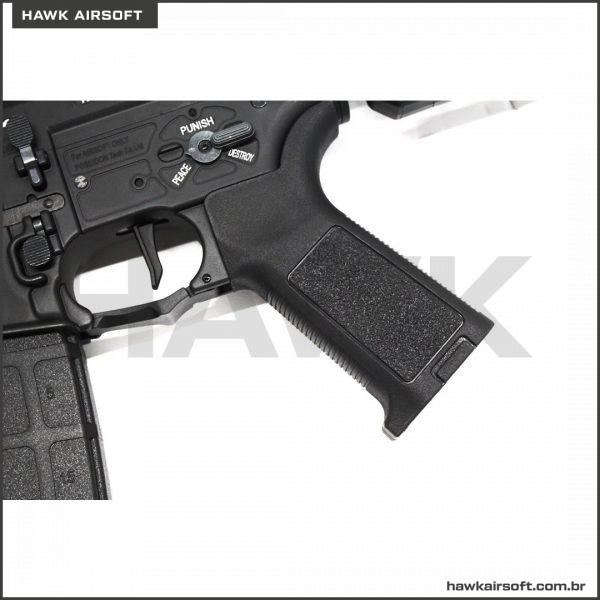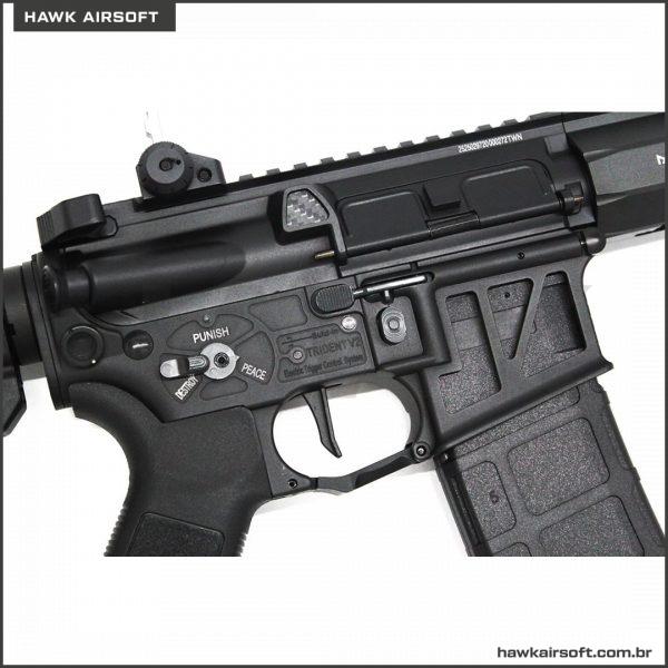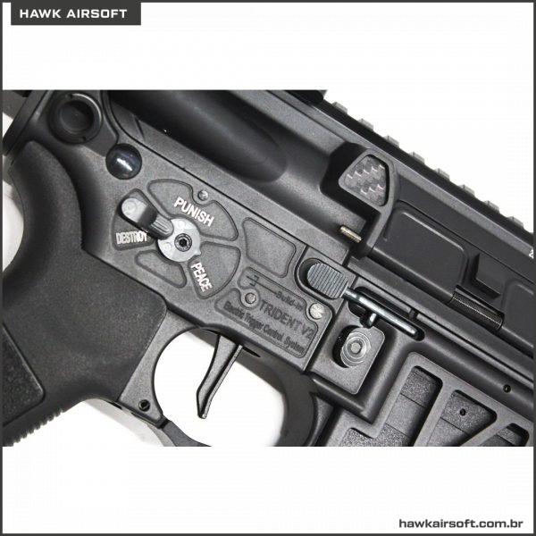 O corpo é feito inteiramente de metal, com marcações de poseidon em baixo relevo. O handguard M-LOK é em metal com comprimento de 13,5 polegadas.