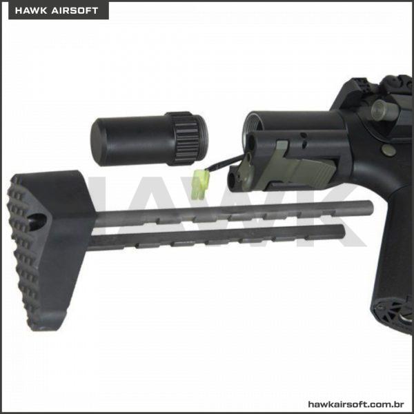 - Sistema de controle de disparo eletrônico integrado ARES (EFCS – Safe / Semi / 3rd Burst / Full Auto)